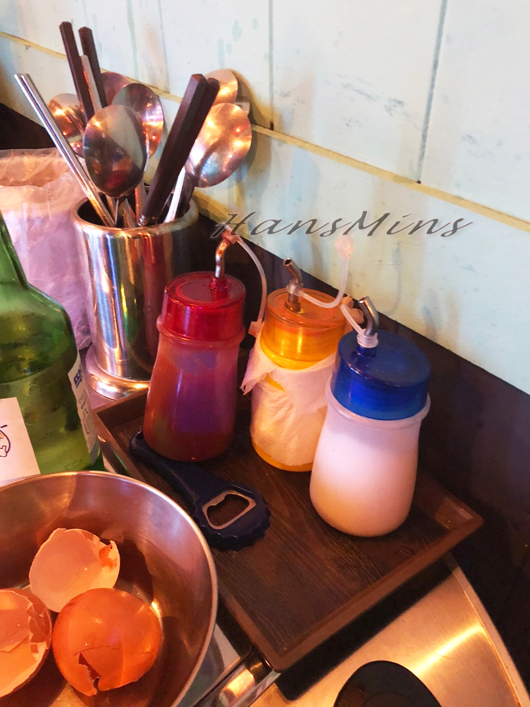 식용유 소금 케첩은 테이블에 있습니다!